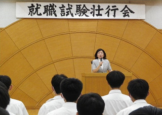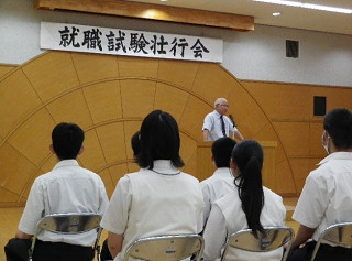 今、皆は、元気だ。これまで育んでくれたご家族、指導してくれた先生方に感謝の気持ちをもって、精一杯やらなければならない。新しいことをやるには、不安と心配がある。どんな状況でも挑戦していかなければならない。就職試験は,自立の道を開くことだ。合格はゴールではない。働けば金を得る。しかし、金だけのために働くのではない。職業意識啓発講座で、ある先輩が、「今、自分は、仕事にやりがいを感じている。将来は、こういう仕事をしたいと思ってやってきた。」と話していた。皆も、そういう人になってほしい。先輩のような気持ちで就職試験に臨んで欲しい。応援している。