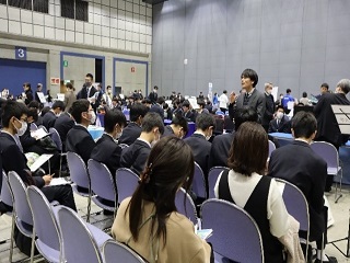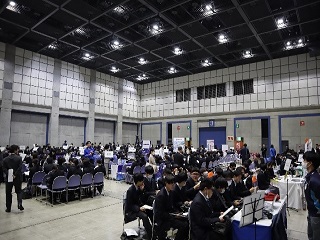 3月11日(水)、アクトシティ浜松展示イベントホールで「学校・企業説明会」がありました。高校卒業後の進学先となる大学・専門学校等23校、企業21社が参加する説明会で、1・2年生全員が参加しました。各30分の入替制で、希望する3ブースの説明を受けました。